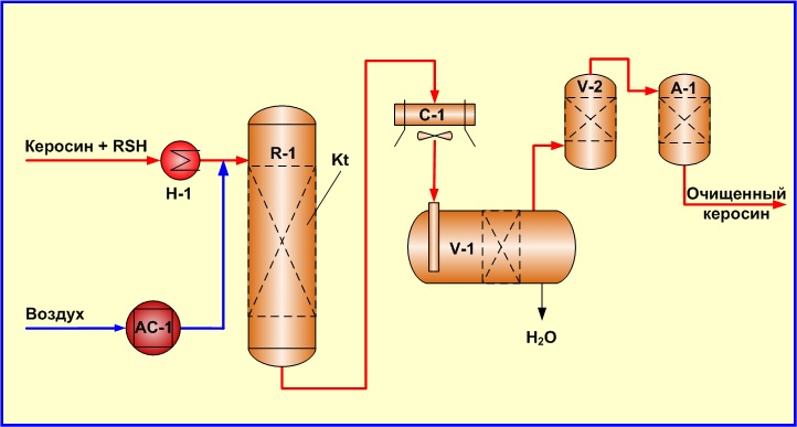 для очистки от сероводорода и меркаптанов прямогонной бензиновой фракции (фр. 62─180оС) или бензина каталитического крекинга с высоким содержанием меркаптановой серы.